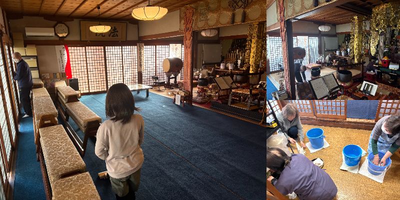 法要後には皆さまと一緒に本堂、大広間、玄関、釈迦堂・永代供養廟などに分かれて、境内の大掃除を行いました。いつもご協力をいただきありがとうございます。
